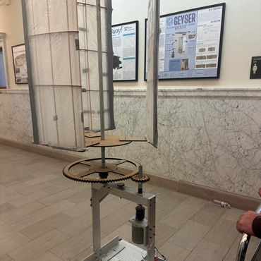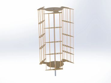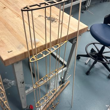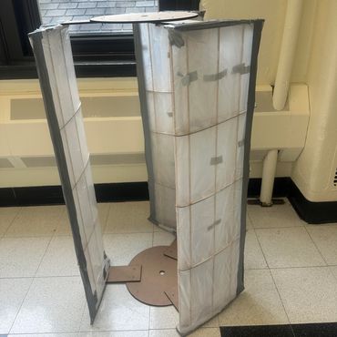 I modeled both turbine sizes in SolidWorks using plot data of a NACA 0015 airfoil and laser-cut the connectors and airfoil cross-sections for fabrication. During testing, our team assembled the turbines using dowels and plastic wrap to accurately replicate the geometry of the small-scale model. After gathering power output data from our large scale wind turbine, we compared our power coefficient with our previous model.